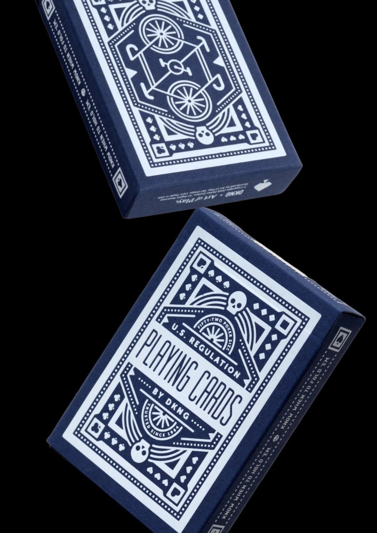 Created in partnership with California based creative studio, DKNG Playing Cards offer a fresh interpretation of the classic Bicycle Rider Back. The updated design is crisp and playful in both red and blue.
