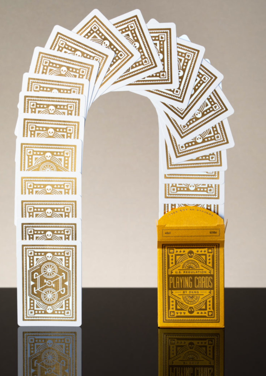 Limited Edition DKNG Playing Cards foil-stamped with gold foil on the backs of every card and encased in a luxurious gold-on-gold embossed tuck box.