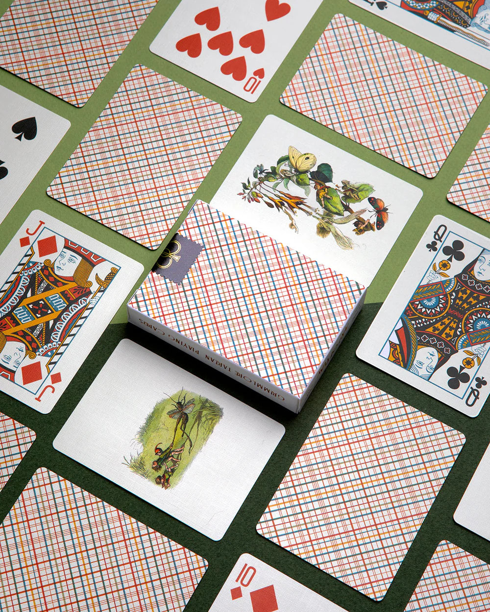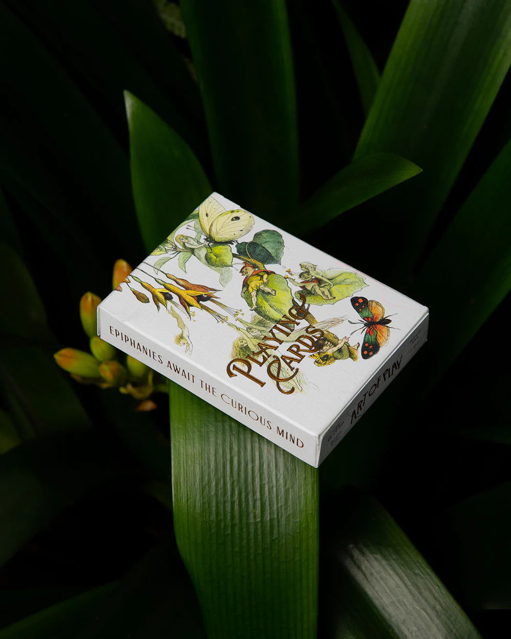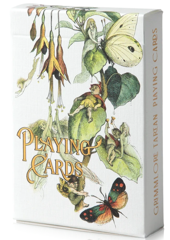 Premium playing cards inspired by worlds of eventyr. Grimmlore offer a colorful tartan based on Dan & Dave's original Vintage Plaid series of cards. Their whimsy follows a troupe of flower sprites playing in a garden of earthly wonder. Perhaps if you look a little closer, your imagination may join them.