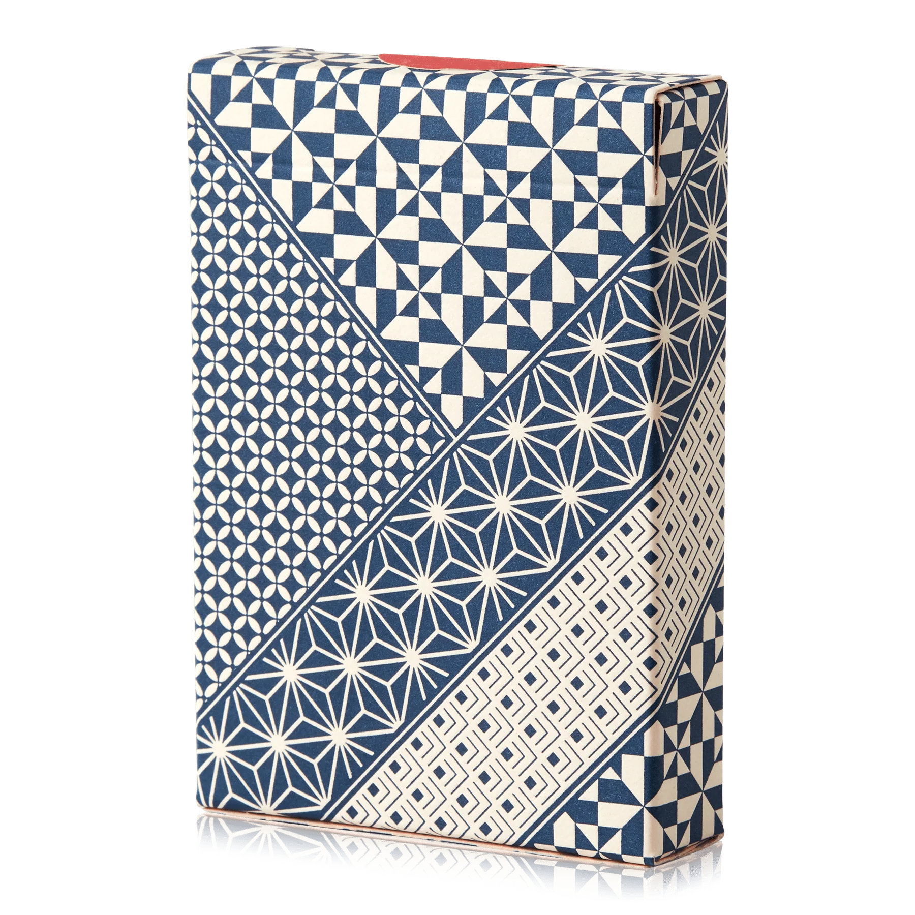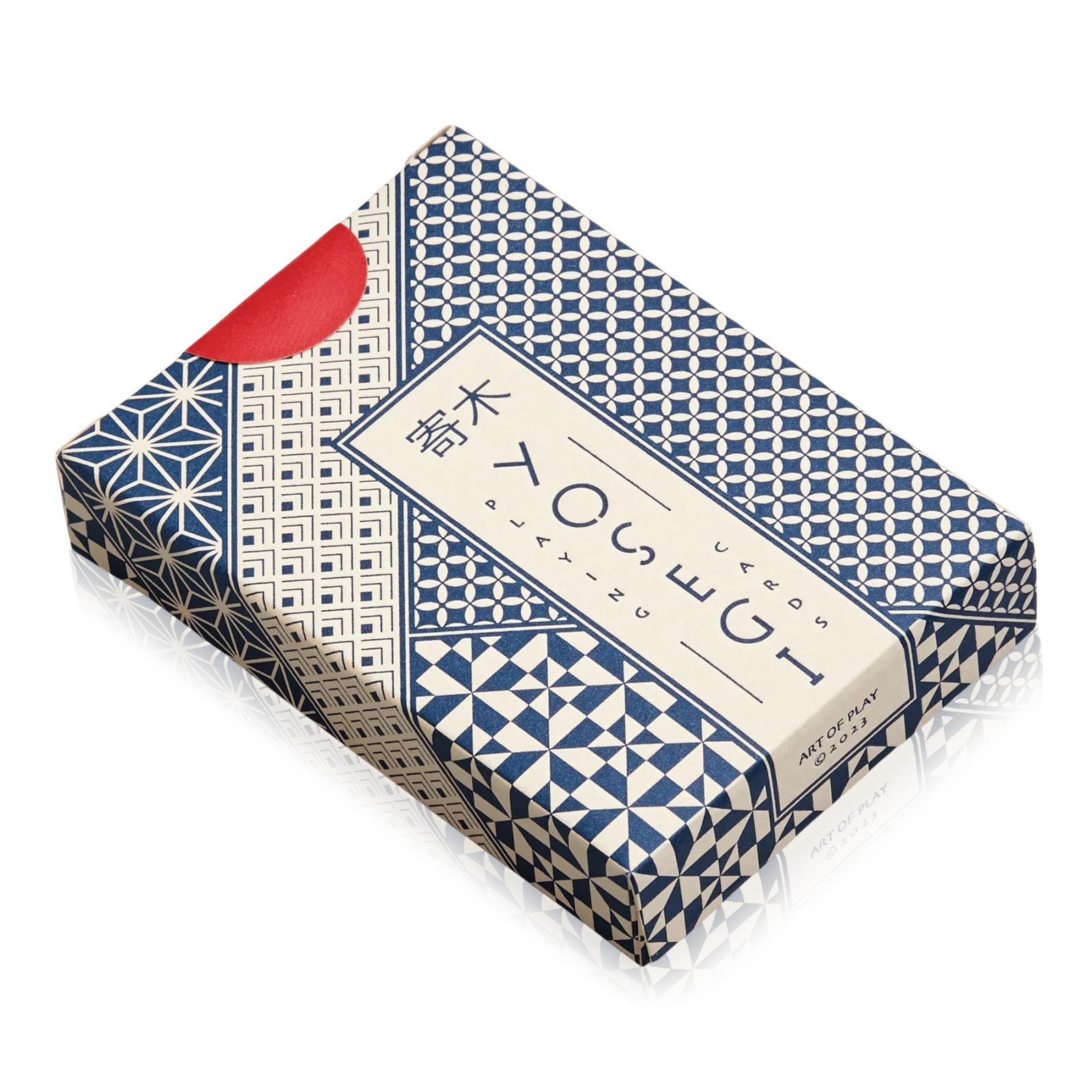 Inspired by Japanese wood marquetry known as "Yosegi," the deck features custom-designed face cards that complement a Japanese aesthetic. The tuck box was printed on a vintage letterpress, giving it a rich texture and handmade quality.