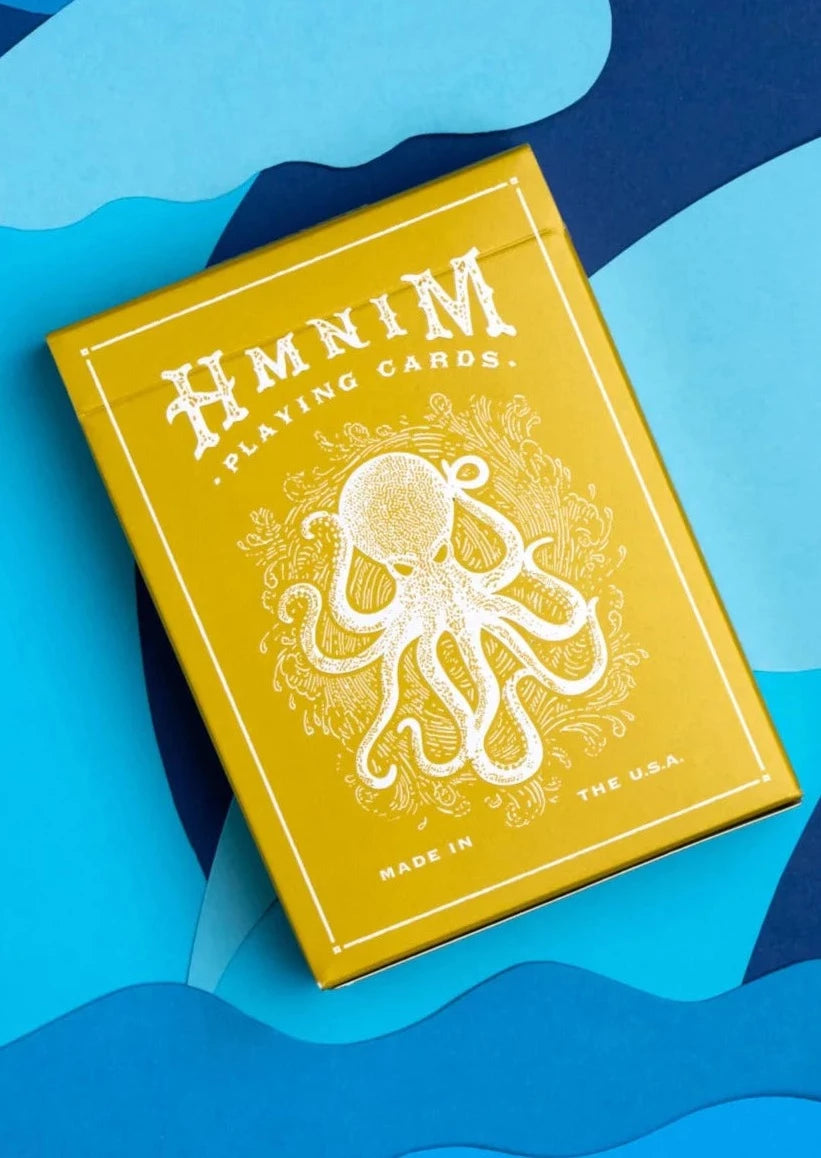 Designed around the HMNIM Octopus logo, the deck features a nautical theme with custom court cards depicting aquatic folklore creatures.