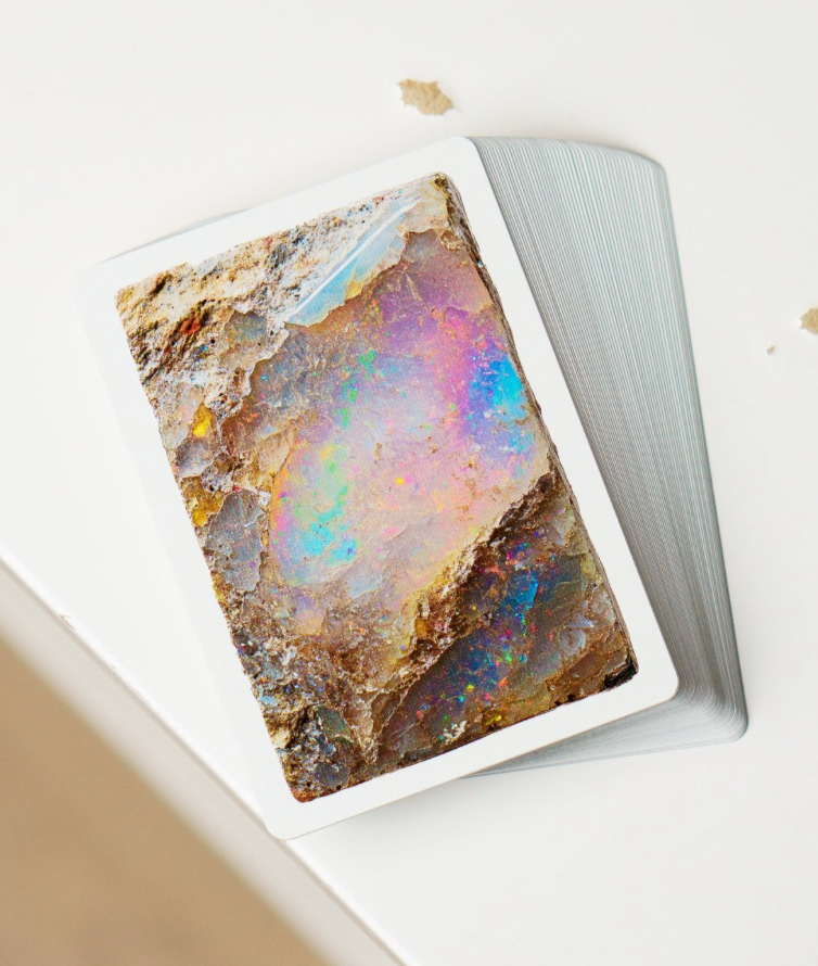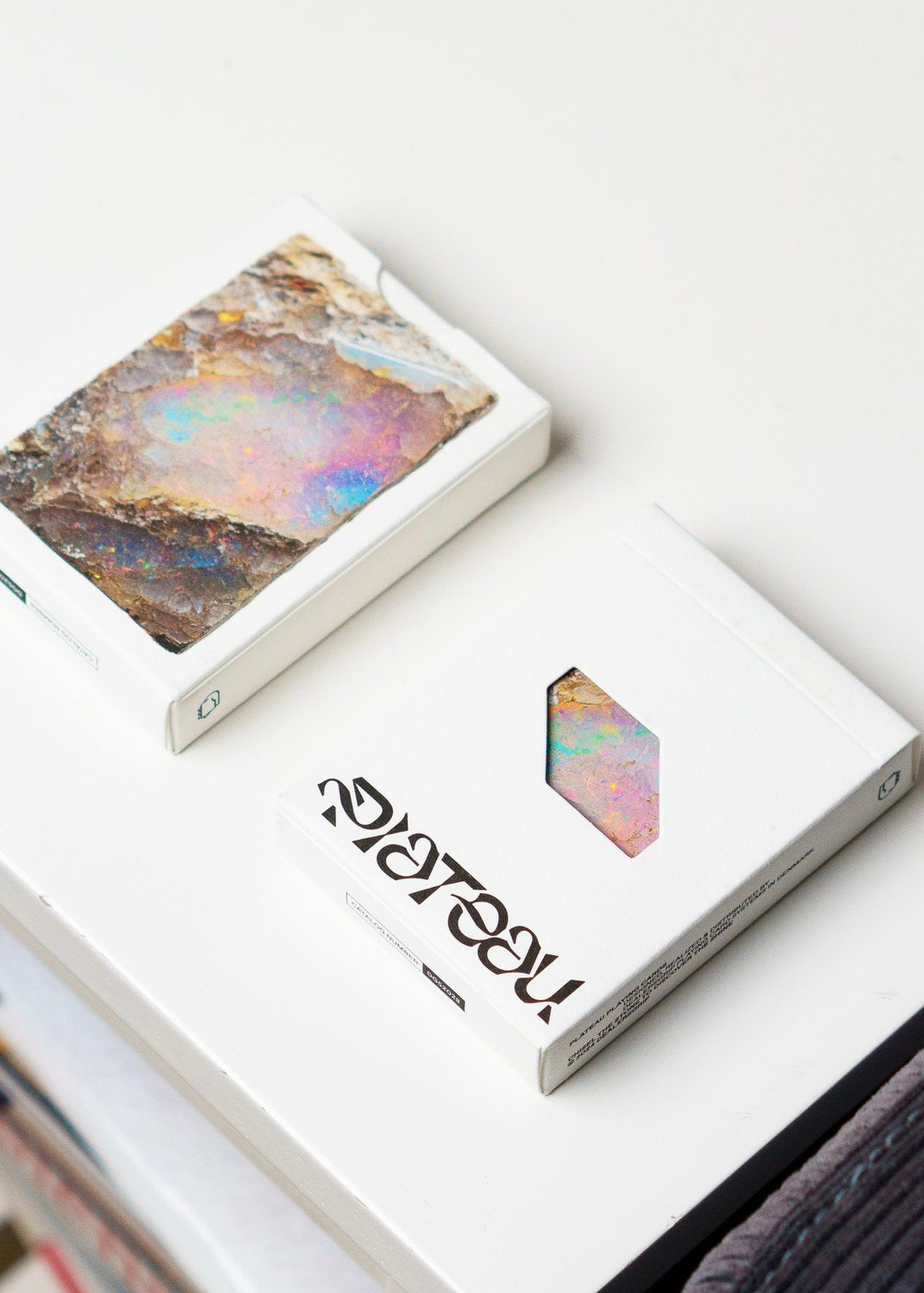Housed in a premium matte-finish tuck case with custom typography and a stone-shaped viewing window — offering a glimpse at the vibrancy within.