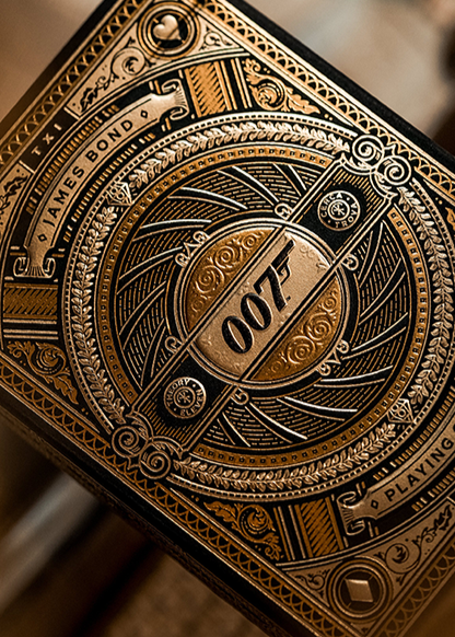 Theory11 produces the world's finest playing cards, and these are a case study example. The box features two layers of gold foil, with a sculpted 3D emboss of the James Bond family crest on the back panel.