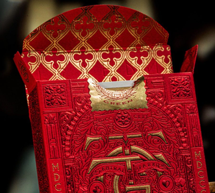 Shielded in red and gold foil on a vibrant Red paper, this new limited edition of Tavern on the Green Playing Cards feature some the most intricate details on a tuck case we've ever produced. Inside and out, every detail shines. Exquisite embossing and ultra-rich foil create an aura that only belongs to Tavern.