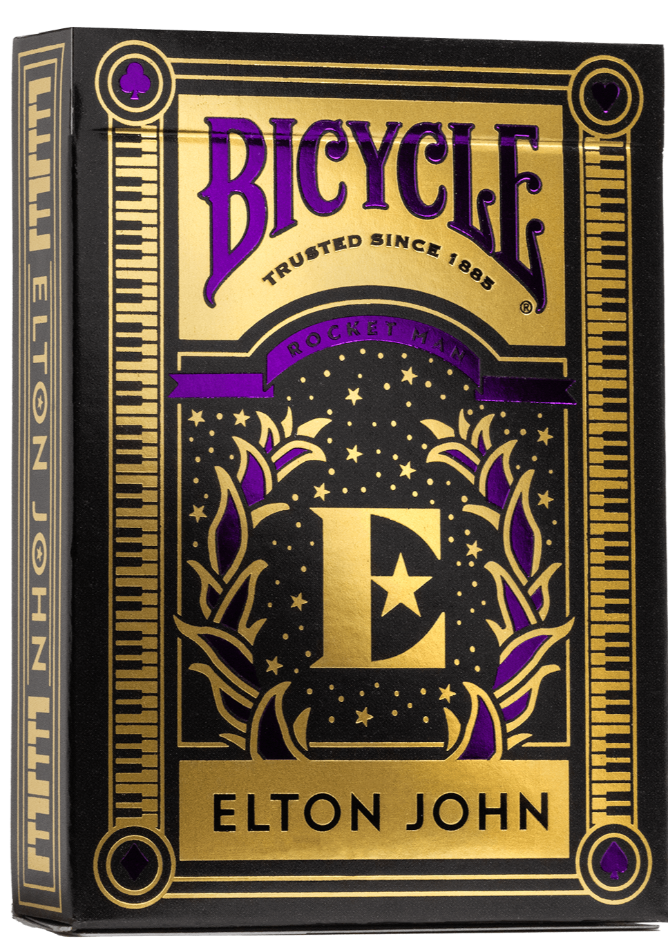 Featuring iconic artwork of Elton John on the court cards and golden holographic piano keys on the tuck, take a stylish journey down the Yellow Brick Road with every hand.